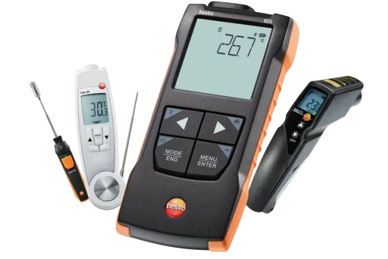 Auflistung der Messgeräte zur Temperaturmessung von Gasen, Flüssigkeiten, Oberflächen und Feststoffen.